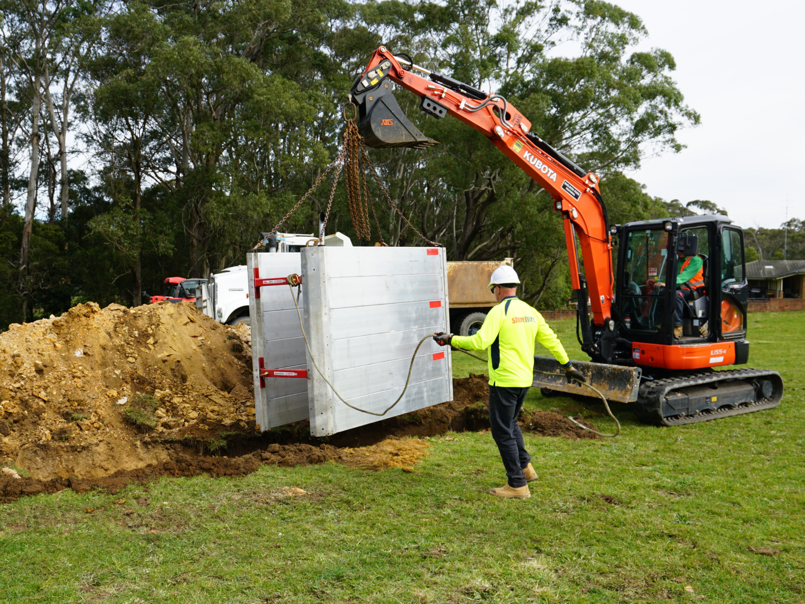MAPS boxes can be installed using the āDig & Placeā method, where using lifting chains and a MAPS boxes lifting eyes, the box is lowered into a trench or excavation that has been completely dug out to the required depth, and the space between the box and the walls backfilled with soil before any work begins.